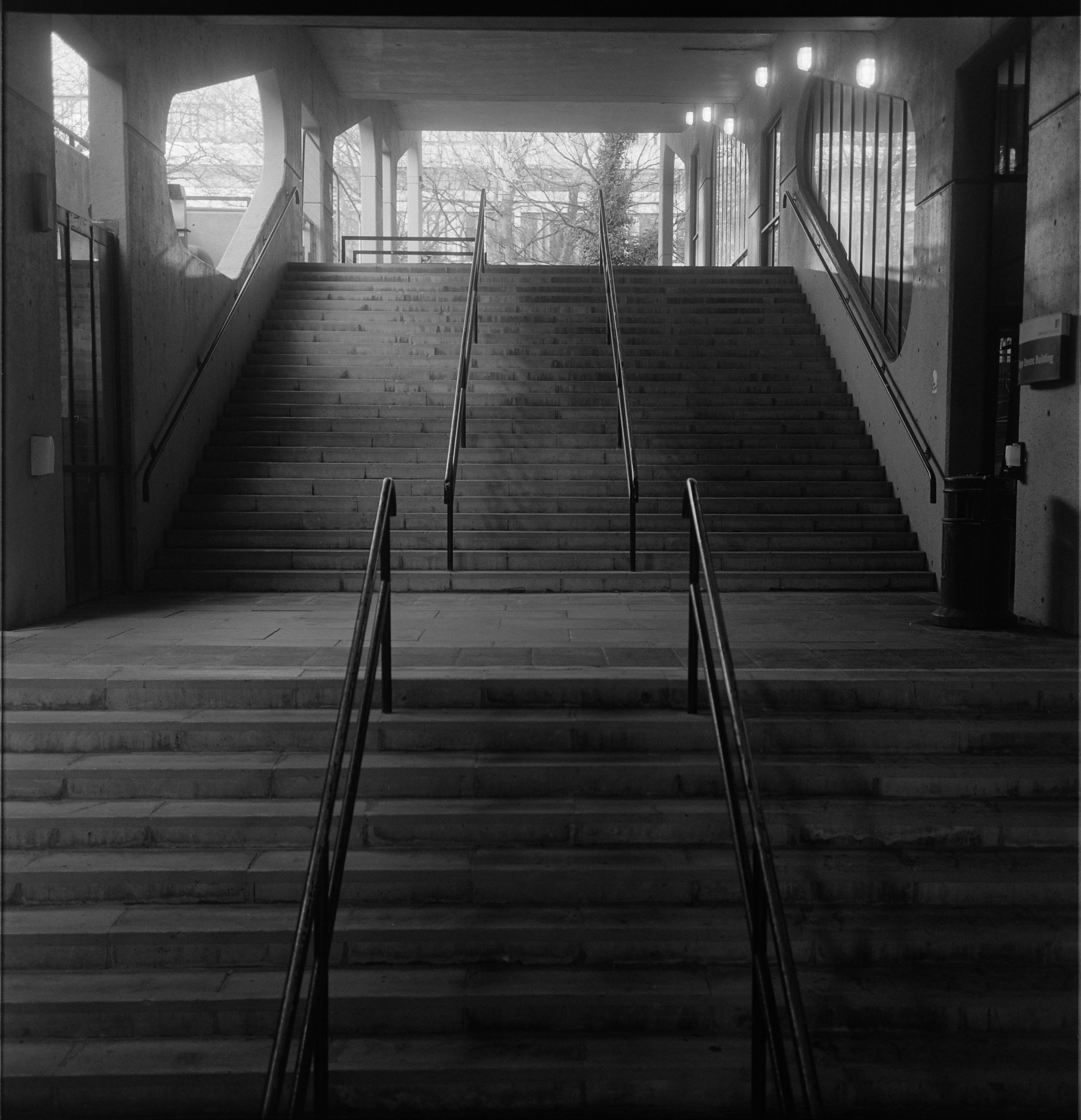 There are several spaces in Leeds which I have been drawn to on multiple occasions, and the stairs beneath the Roger Stevens Building at the University of Leeds are a good example of this. The image of the decaying hydrangeas is from a street of modernist houses I really like and walk down frequently, and the tower block is representative of similar post-war structures all over Leeds.