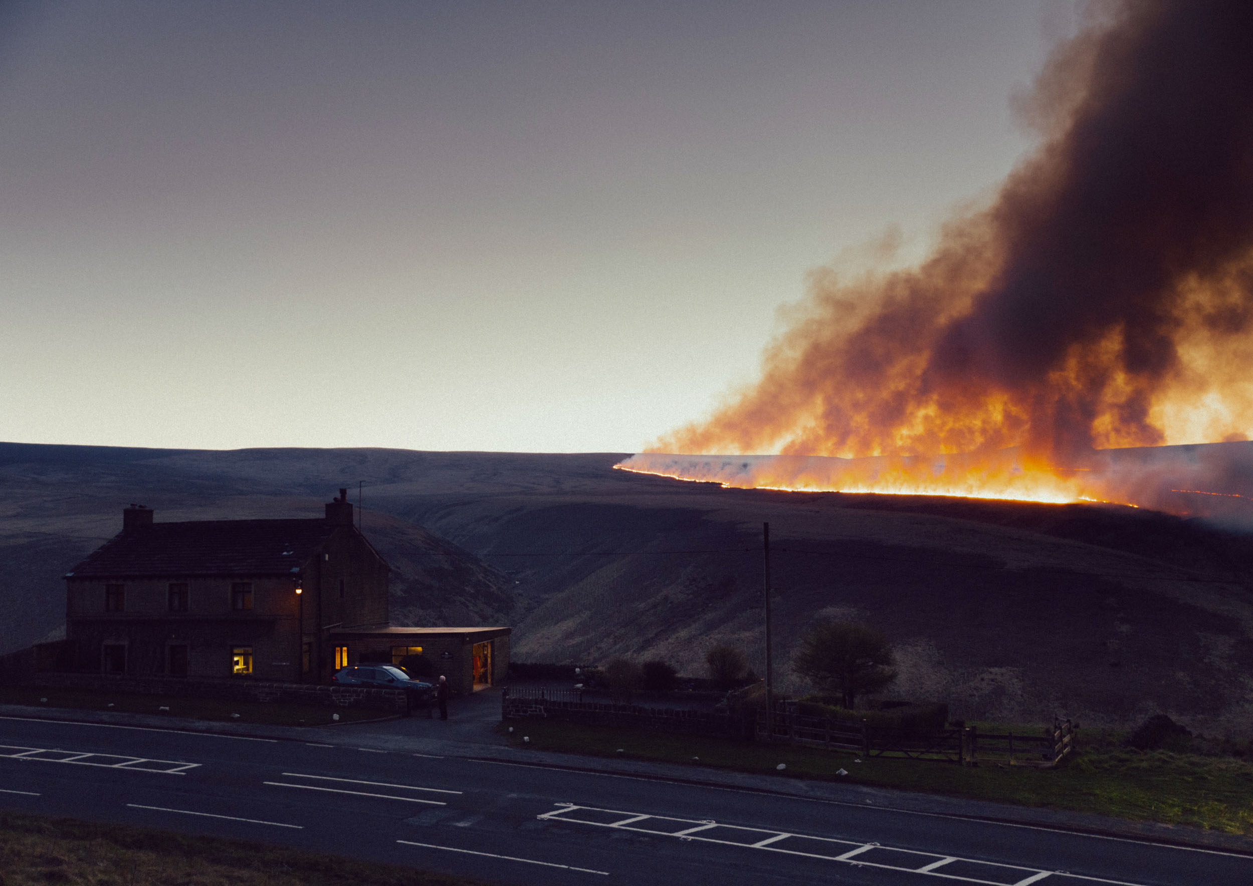 A pathway leading off Reddisher Road in Marsden – I’m not sure when the gate was installed, but over its presumably many years it has become broken and twisted and barely performs it’s function anymore. Now it acts more as a waypoint or an unintentional piece of art. Farming equipment rusting away on a path near a farm on the Cupwith side of Marsden. One assumes it’s no longer fit for purpose and too much of a hassle to move so for now exists as a sculpture for walkers to enjoy. Fire on the moor headed toward March Haigh on the 12th of April. As fires become more and more a part of living in this area I won’t be surprised if this becomes part of a larger collection juxtaposing them against everyday life.