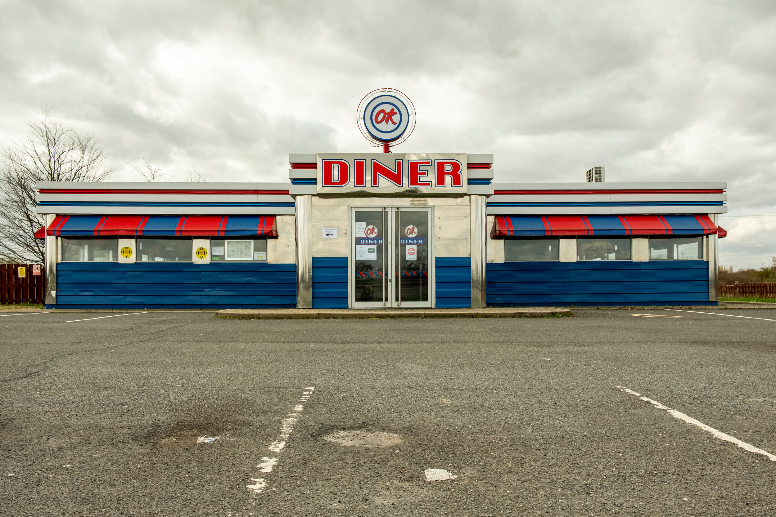 Each submitted image represents for me something local, and depicting of home. I grew up in North Nottinghamshire, and the Power stations dominated the skylines, and always let me know from even a distance away that the journey home was almost complete. That power station is Cottam, and is in the process of being demolished, hence the security presence. The image of the mint green building is part of Newark Northgate station and car park complex, and again always signifies journeys to and from home, a terminus for travel. The OK Diner image is again, a signifier that home is not far away lying just North of Newark on the A1, and I love the retro feel and metal cladding on the building which gleams when it is bathed in light.